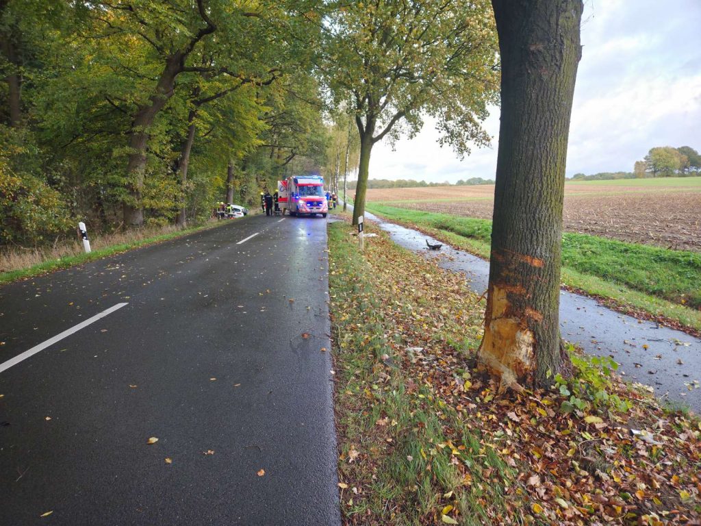 K 206 (Kirchwalsede > Süderwalsede, 25.10.2025 (jh). Gegen 16:42 Uhr alarmierte die Feuerwehrleitstelle die Kräfte der Feuerwehren Kirchwalsede, Bothel, Wittorf und Visselhövede auf die Kreisstraße 206 zwischen Kirchwalsede und Süderwalsede.