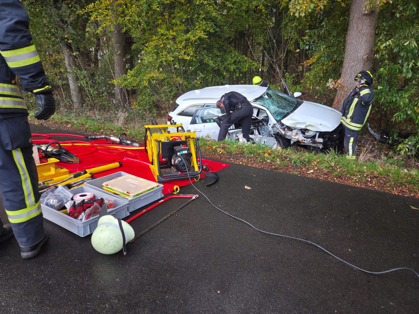 K 206 (Kirchwalsede > Süderwalsede, 25.10.2025 (jh). Gegen 16:42 Uhr alarmierte die Feuerwehrleitstelle die Kräfte der Feuerwehren Kirchwalsede, Bothel, Wittorf und Visselhövede auf die Kreisstraße 206 zwischen Kirchwalsede und Süderwalsede.