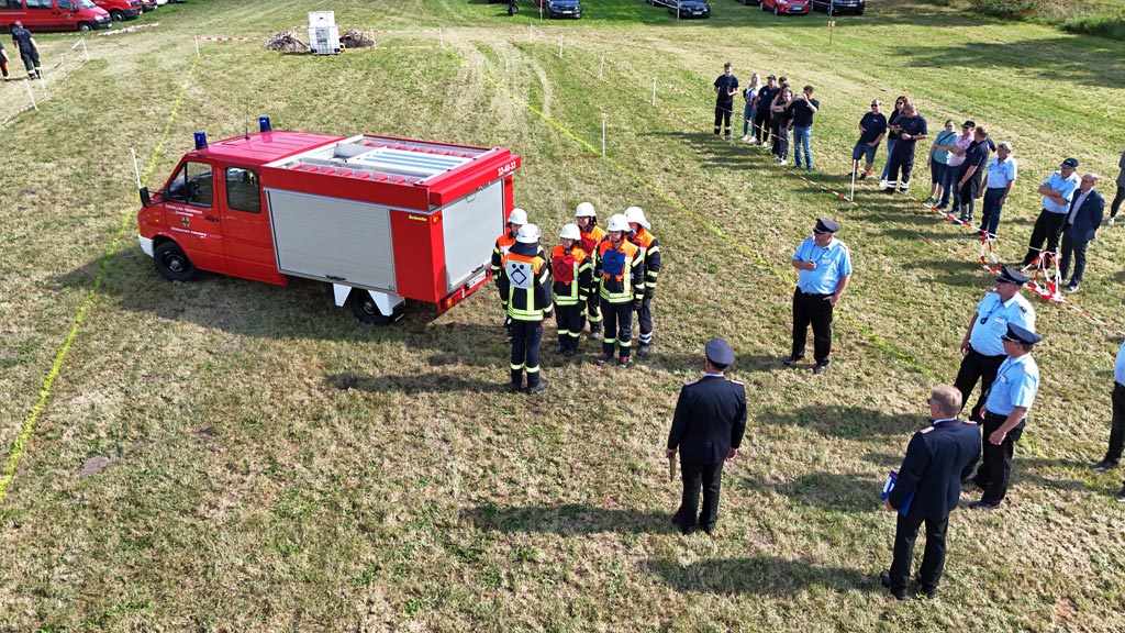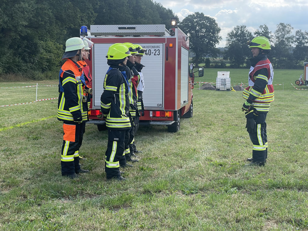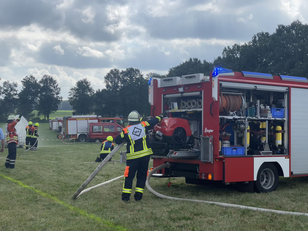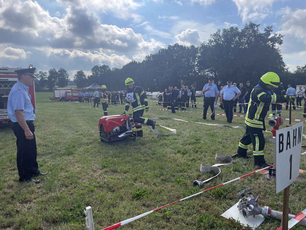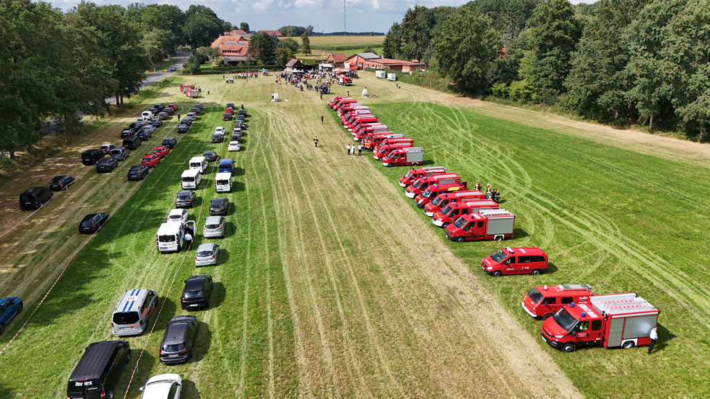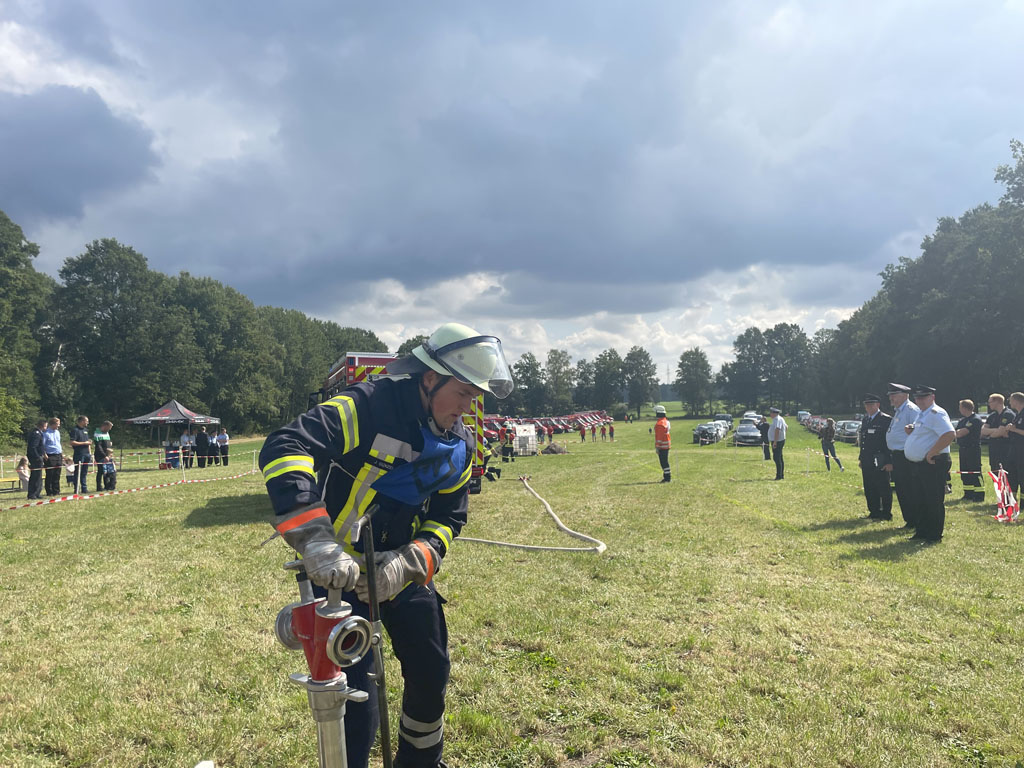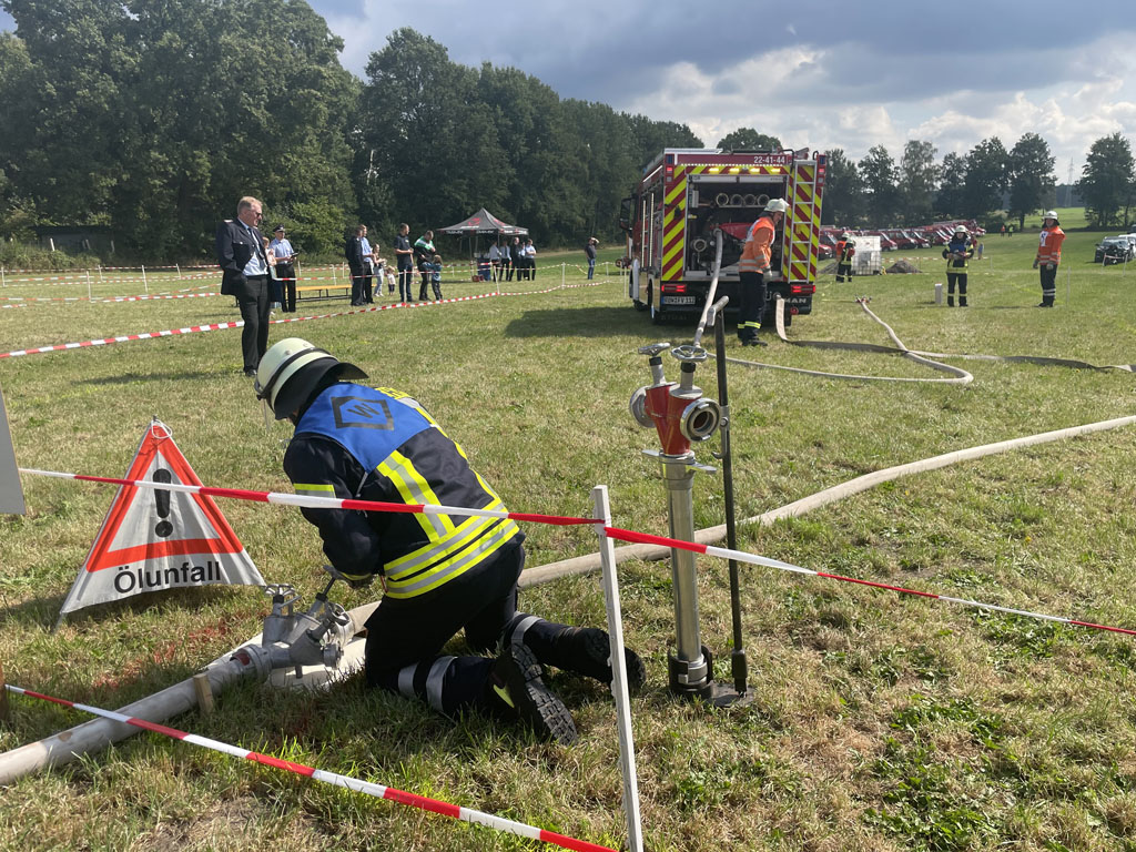 Ottingen, 30.08.2025 (mf). Nach mehreren Jahren in Folge, in denen die Kreisleistungsvergleiche zuerst aufgrund von pandemiebedingter Unterbrechung (Corona) und anschließend infolge Umstrukturierung und Anpassung des Regelwerkes über die Bestimmungen für die Durchführung von Leistungsvergleichen im Land Niedersachen pausieren mussten, wurde dieses Jahr mit einem großen und angepassten Rahmenprogramm in Ottingen bei Visselhövede aufgefahren. Das Rahmenprogramm sah die Module Löschangriff, Kuppeln einer Saugleitung und Sprechfunk vor. Bei den sogenannten „neuen“ Wettbewerben entfiel das Modul Maschinistenprüfung zu Gunsten des Sprechfunkmoduls, da z.B. nach heutigem Stand der Technik oftmals die Fahrzeuge schon Rückfahrkameras verbaut haben, die ein Rangieren und Rückwärtsfahren gegenüber den alten Regularien mit nur einem Einweiser doch stark vereinfachen.