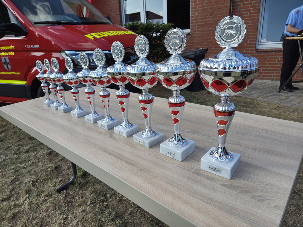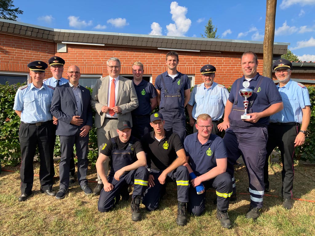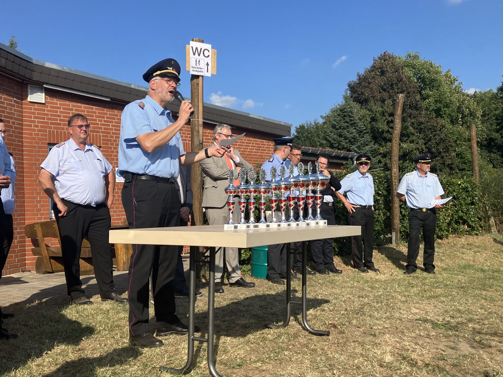 Punkt 17:00 Uhr wurden die Siegerehrungen vorgenommen. Gruß- und Dankesworte durften der Kreisbrandmeister Peter Dettmer, der Landrat Marco Prietz sowie der Bürgermeister von Visselhövede André Lüdemann übermitteln, bevor die Platzierungen der Ortswehren verkündet wurden.
