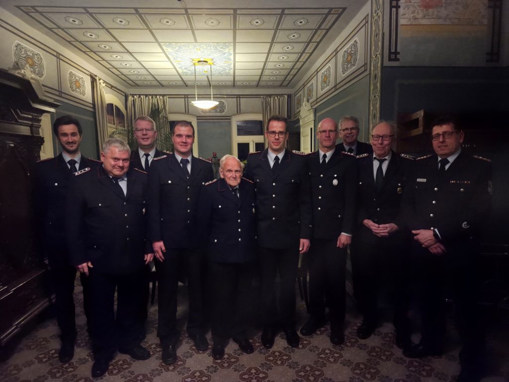 Für die darauffolgende besondere Ehrung erhob sich die Versammlung von den Stühlen. Beeindruckende 75 Jahre ist Karl-Heinz Delventhal bereits Feuerwehrmitglied und wurde deshalb hierfür ebenfalls mit dem Niedersächsischen Ehrenzeichen geehrte.